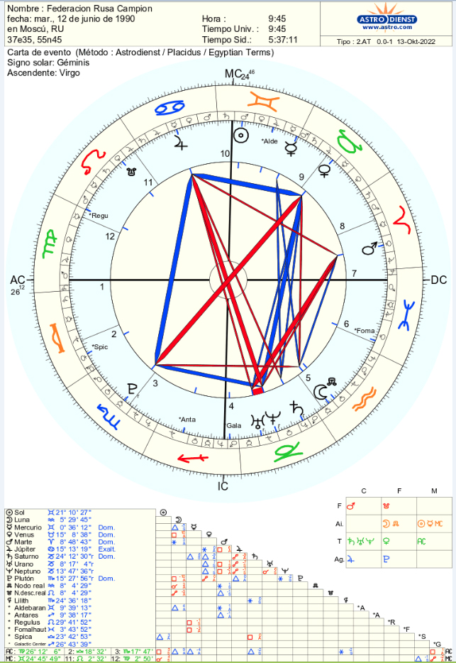 en Moscú terminarán con una serie de allegamientos favorables al Estado y al gobernante como son Medio Cielo (meridiano) en conjunción con el Sol y dependiendo de la posición y